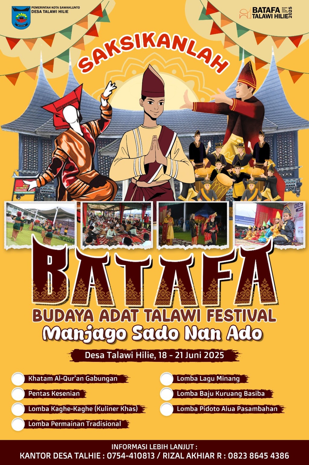 Menyadari hal tersebut, maka dipandang perlu untuk menyelenggarakan sebuah kegiatan yang mampu merangkul seluruh elemen budaya Minangkabau dalam sebuah wadah yang menarik, edukatif, dan inklusif. Pekan BATAFA Talawi Hilie hadir sebagai sebuah inisiatif strategis untuk mencapai tujuan tersebut khususnya Budaya Adat Talawi.